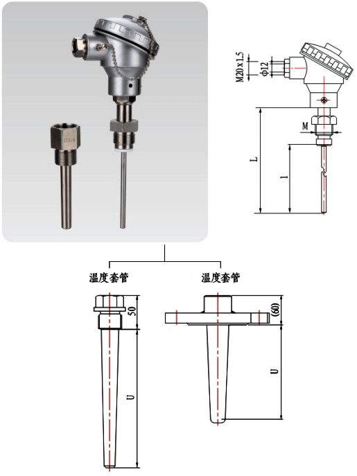 新結構類型快速拆卸熱電偶(熱套式熱電偶)由鎧裝熱電偶和熱電偶組成保護管熱電偶套管,可輕松提取溫度測量熱電偶組件,用于檢測、維護和更換。沒有必要拆下熱電偶保護管并影響正常生產。 熱套式熱電偶標準化尺寸允許客戶準確訂購備件 熱套式熱電偶結構通常用于進口熱電偶。