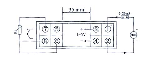 1、進行標定時,按照上述的典型的接線圖進行布線,在輸入側連接標準電阻箱( ZX-2等),在輸出側連接24VDC穩壓電源,串聯連接標準電流計。