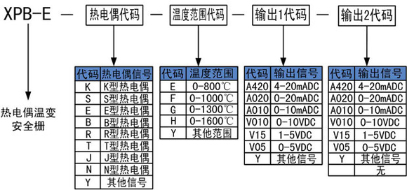 XPB-E系列熱電偶輸入安全柵的選型代碼